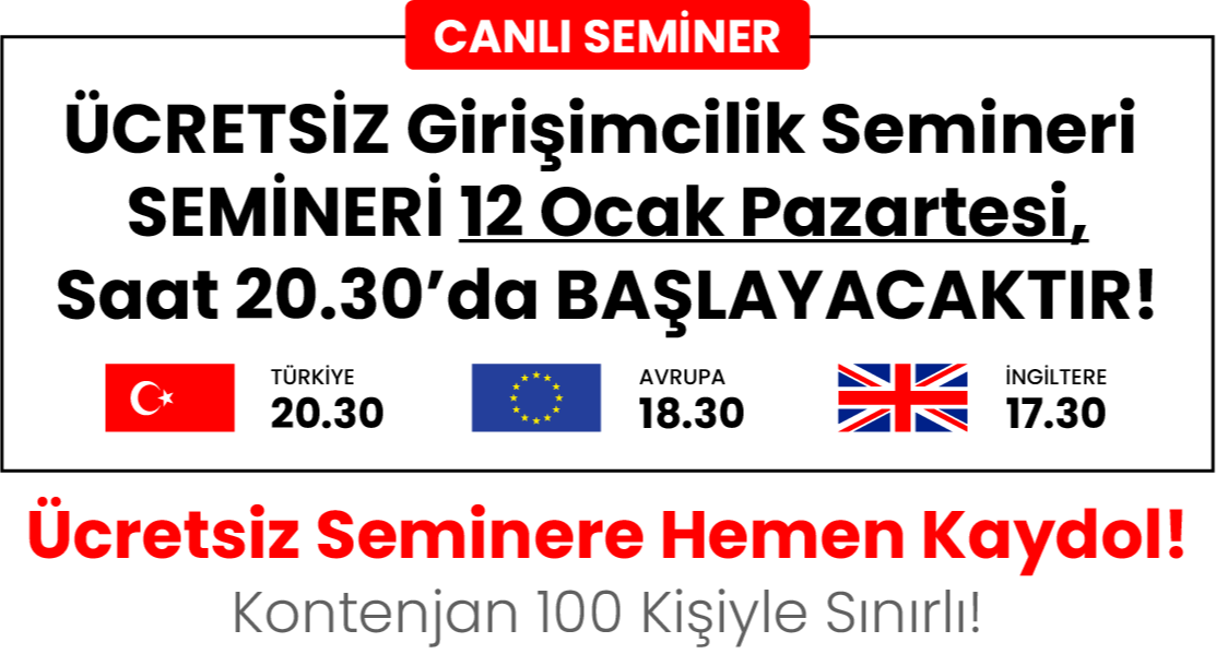 Bu tamamen bahane çünkü size gerçektende SIFIRDAN ULUSLARARASI ÇAPTA KENDİ İŞİNİZİ KURABİLMENİZ İçin online ticaret ile nasıl güvenilir ve risksiz adımlar atacağınızı bu ÜCRETSİZ seminerde öğreteceğim...